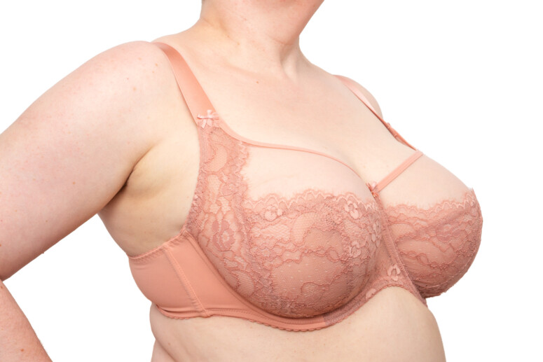 Miseczki nie są szczególnie szerokie, ale wiem, że szerokość fiszbin będąca „dość dobrą” dla mnie bywa za duża dla wielu innych biustów. Jeśli masz piersi superwąskie, polecałabym Ci inne marki, jeśli średnio-wąskie – powinno być OK, jeśli bardzo szerokie – może być różnie. Mostek należy do wysokich – to model nie dla „niskomostkowych”. Tej wysokości w dużym stopniu zawdzięczamy skuteczną stabilizację.