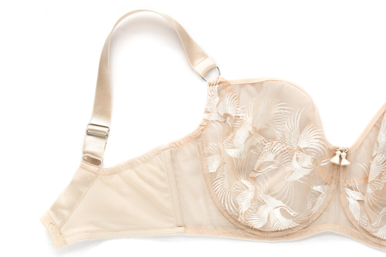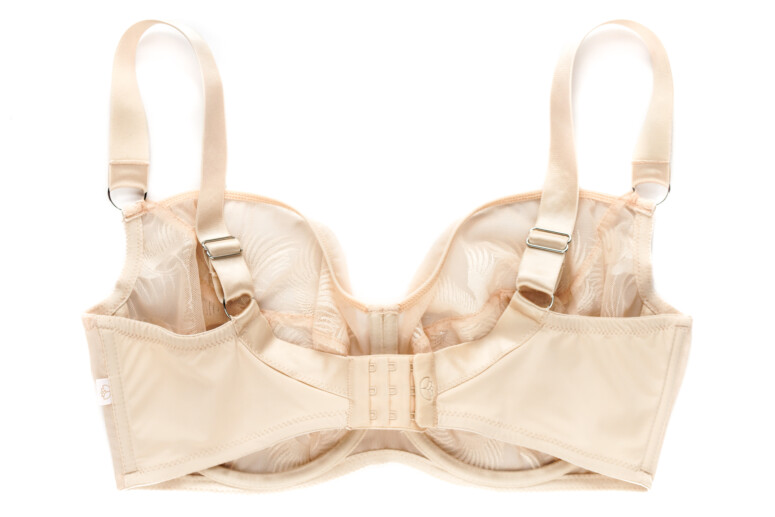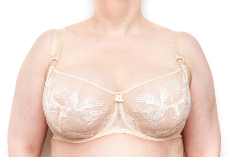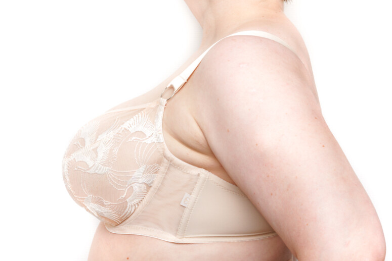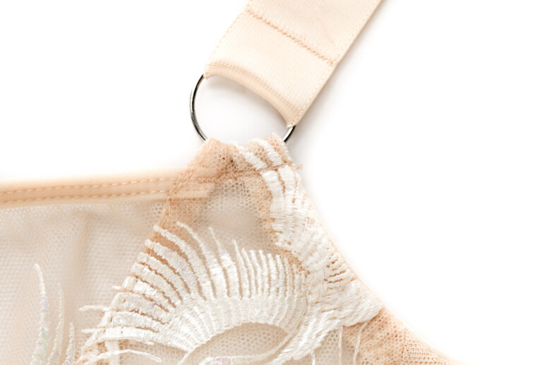 Jeśli mocno zwracasz uwagę na szczegóły, dostrzeżesz gdzieniegdzie subtelne naprężenia-wcięcia w miejscach, w których w hafcie występuje dłuższa linia wzoru. Nie wpływa to na ogólny kształt ani tym bardziej nie jest widoczne przez ubranie. Dla mnie to bardzo ciekawe, przyglądać się zachowaniu różnych surowców w naprężeniu – gęste hafty o drobnych wzorach będą naciągały się w miarę równomiernie, w przypadku rzadziej zahaftowanej powierzchni mogą być lokalne różnice w rozciągliwości. Ważny jest też podkład, czyli materiał, na którym wykonano haft. To dlatego nie każdy haft będzie tak samo działał w każdym rozmiarze… Miło tak coraz więcej rozumieć z tego, co mówią nam producenci bielizny 🙂