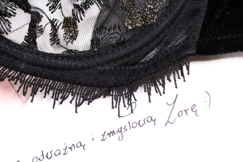 Jest zupełnie dobrze – mimo że bałam się, czy „futerko” u dołu nie będzie gryzło, okazało się raczej nieszkodliwe. Ozdoba ta jest wszyta w taki sposób, że nie powstały żadne dodatkowe szwy dotykające skóry. Rzecz jasna, w trakcie noszenia frędzelki lubią się wywijać na zewnątrz, a u wrażliwych osób mogą zapewne drapać, gdy trafią do środka fałdki tworzącej się np. przy siedzeniu. Specjalnie zwróciłam na to uwagę, ale nie mam dyskomfortu siedząc w Zorze. Boczne „patyki” pewnie będę próbowała usunąć, choć muszę przyznać, że w porównaniu z wieloma stanikami są wszyte w naprawdę przyjazny sposób i zauważam je stosunkowo mało. Trochę drapie zapięcie – liczę, że zmięknie w praniach. Podsumowując – widać staranie o wygodę, i choć pewne rzeczy „tradycyjnie” mi doskwierają, to jednak oceniam dobrze oba staniki.
