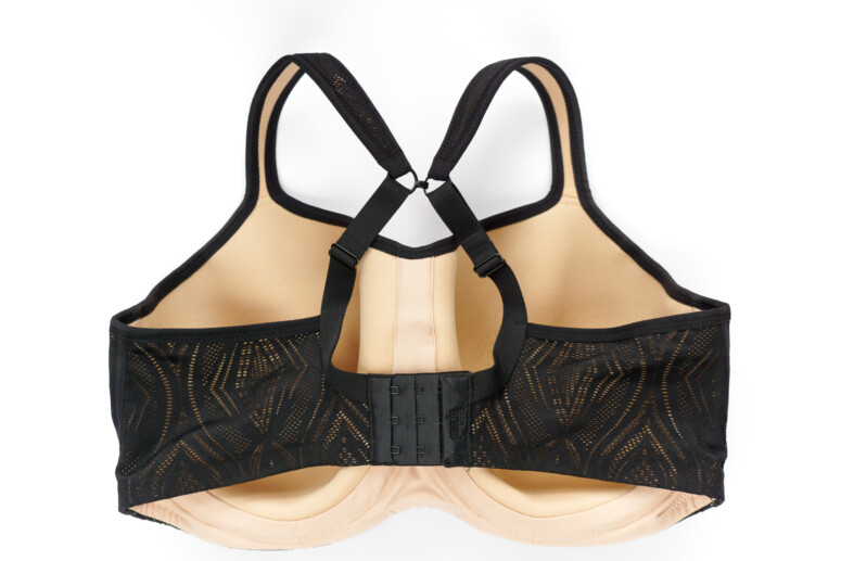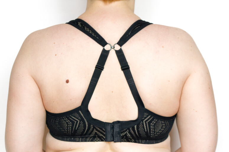 Co do redukcji wstrząsów – nie mam sposobu, by zmierzyć, czy obiecane przez producenta 83% redukcji ruchu piersi jest prawdą, ale gdy próbuję w Panache Sporcie podskakiwać, to bounce jest naprawdę minimalny. Biust praktycznie nie opada w dół, jedynie faluje nieco w górę, i tu czekam na kolejne osiągnięcia inżynierii stanikowej, bo jeszcze żaden testowany przeze mnie model nie przytrzymał biustu od góry tak samo skutecznie, jak od dołu (a BARDZO przydałby się taki ficzer przy pozycjach odwróconych w jodze 🙂 )