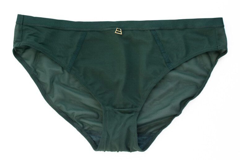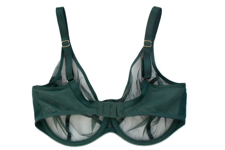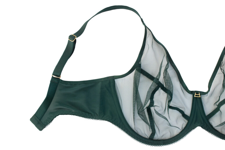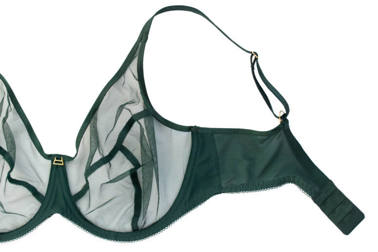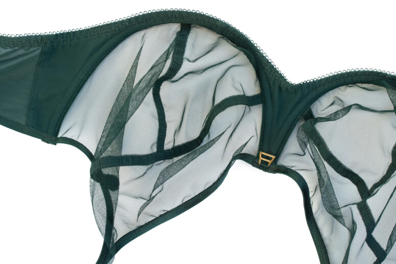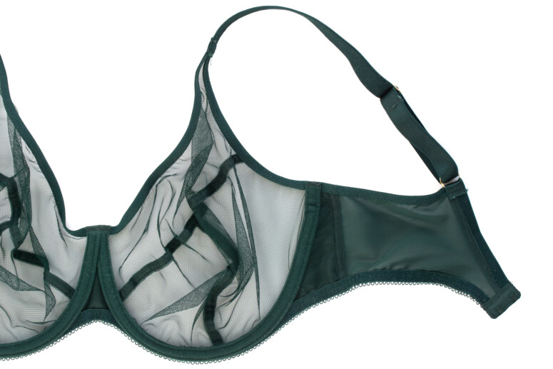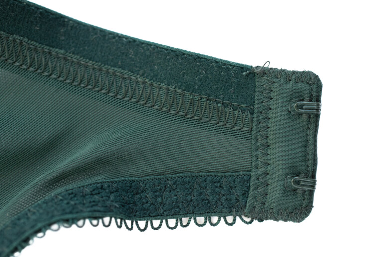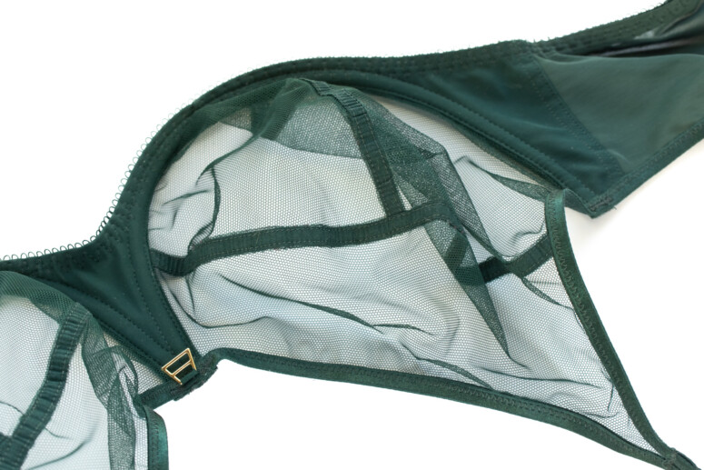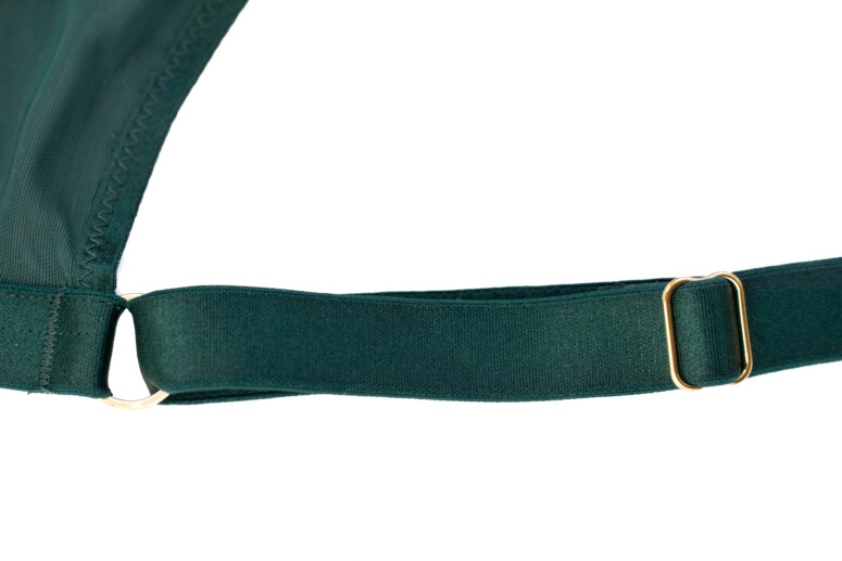 Ramiączka mają lekki połysk, podobnie jak lamówki na wykończeniu miseczek. Wszystko jednolicie ciemnozielone, zielenią dość chłodną, niepozbawioną jednak odrobiny żywego, roślinnego ciepła 🙂