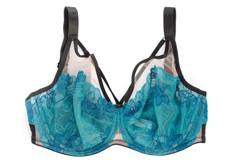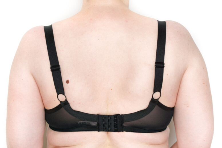 Podtrzymanie biustu jest dobre, z poprawką na lekki luz w górze miseczek. Na miejscu firmy zbadałabym, czy nie dałoby się odrobinę zmniejszyć tego luzu, bo lamówka jest elastyczna i w przypadku pełniejszego u góry biustu powinna móc się dostosować. Problem luzu powinien być mniej odczuwalny przez osoby o naturalnie wysokiej podstawie piersi – wysokim „korzeniu” (root). Bo warto wiedzieć, że wielkość i kształt podstawy piersi, czyli powierzchni, na której piersi wyrastają z tułowia, różni się u różnych osób wielkością i kształtem – na przykład szerokością i wysokością.