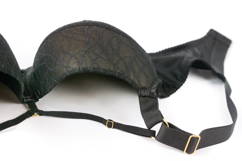 Keila należy do full-cupów, co w nomenklaturze naszych producentów często oznacza: miseczki w całości usztywnione pianką gorseciarską. Skądinąd, jest to też raczej full pod względem zabudowania (i tak tego określenia używa Unikat) – o pełnych, usztywnionych miseczkach, szytych z trzech części ze szwem skośnym i pionowym. Nie ma co tu marzyć o spektakularnym dekolcie – przynajmniej w sensie eksponowania biustu – bo paseczki robią efekt, jak trzeba i nawet czasem wystają 😉 Są regulowane, a przy tym bardzo elastyczne – moim zdaniem da się je dopasować do każdej piersi.