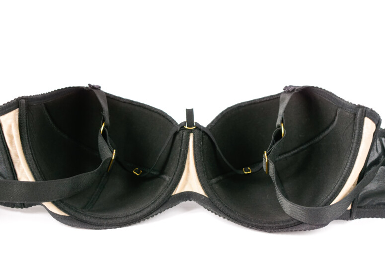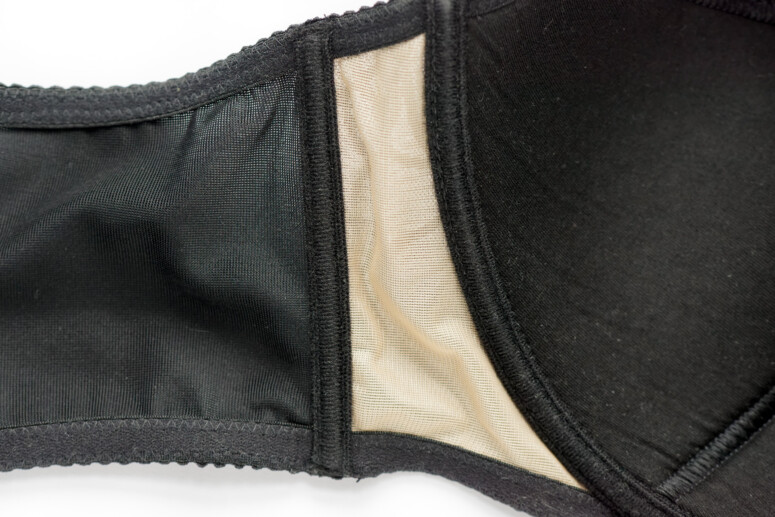 Złotawy jest też, a właściwie beżowy, kolor pianki miseczki, który prześwituje spod czarnej dzianiny, co fajnie współgra z okuciami.