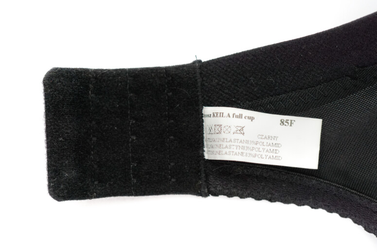 Dla równowagi, teraz trochę się do szczegółów poprzyczepiam – Keila zyskałaby na bardziej drobiazgowej kontroli jakości i uważności szycia. Mam na myśli takie detale, jak ciut niesymetryczna kokardka, trochę wypukły na jednej z miseczek szew, jakaś wisząca nitka tu czy tam, której ktoś zapomniał obciąć. To jednak nie jest produkt premium, a stanik w cenie dwucyfrowej – w sumie więc wychodzi naprawdę good value. Zapięcie jest porządne, wykonanie solidne.