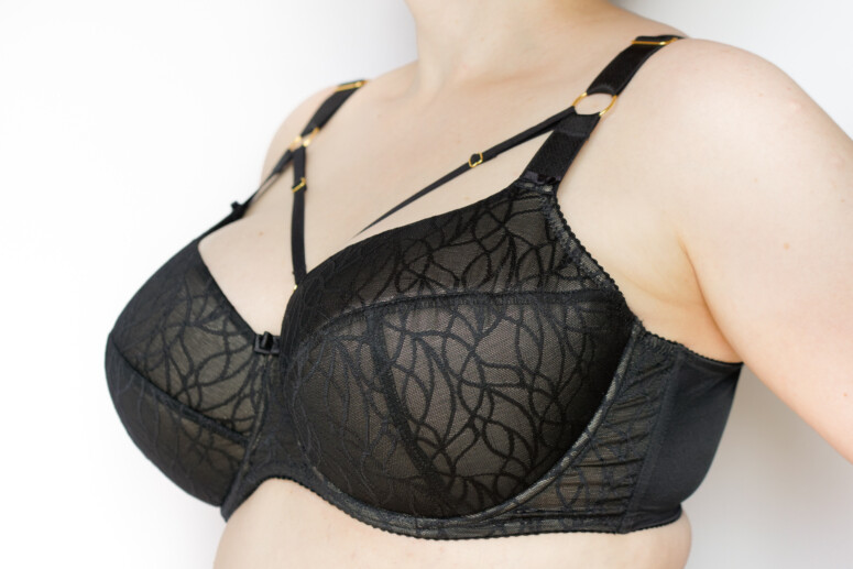 Jedyny problem, jaki widzę z tą konstrukcją, jest taki, że miseczki są wysoko zabudowane również po bokach i dla sylwetek petite (drobnych) może to być niekomfortowe. Keila to w moim odczuciu model dla osób sporych – zarówno stosunkowo wysokich, jak i szerokich. Myślę, że z full-cupów Unikatu może ucieszyć się duża część figur plus size – model ten skutecznie i komfortowo „ogarnia” większe ciało, podobnie jak np. miękkie modele brytyjskich plus-size’owych marek, jak Elomi czy Sculptresse. Z tą pierwszą skojarzyła mi się szczególnie większa ilość przestrzeni w okolicy pachy. Ktosi może przeszkadzać wizualnie fakt, że część przypachowa miseczki nie przylega mocniej do ciała, mnie jednak cieszy, że mam swobodę ruchów i nic mnie nie gniecie w tym rejonie.