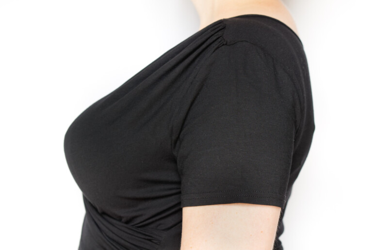 Jak widzicie, profil mojej lewej piersi wygląda trochę stożkowato, czego przyczyną jest moja asymetria – mniejsza pierś nie wypycha miseczki tak mocno jak większa. Nie mam z tym jednak problemu.