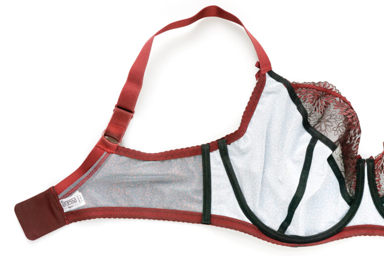 Mocniej podtrzymujące biust materiały niż w Cher trudno mi sobie wyobrazić 🙂 Przód to, jak już wspomniałam, totalnie stabilny simplex, a tył to elastyczna, lecz mało rozciągliwa dzianina powermesh. Biust nie jest może totalnie przymurowany ze względu na mniej sztywny haft u góry, ale trzyma się mocno.