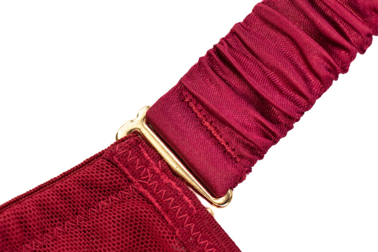 Suzanna jest modelem prostym, na pierwszym planie są tutaj kolor i dodatki – ramiączka łączone ze stanikiem za pomocą złotych haczyków. Złote, znakomitej jakości elementy to w ogóle znak firmowy Movelle (ktosie pamietają model Helena z paseczkami i złotymi ozdobami? Suzanna to, nawiasem mówiąc, ta sama konstrukcja).