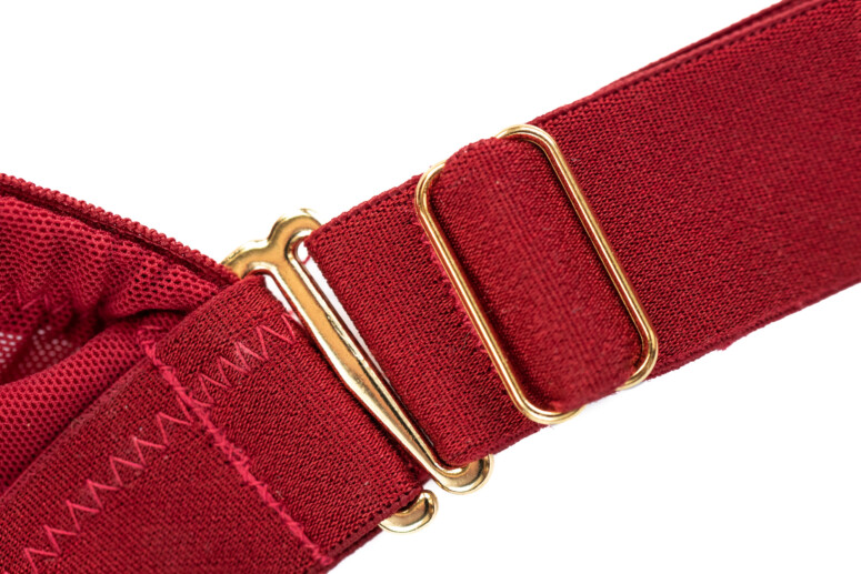 Zanim przejdę do tych wytęsknionych ramiączek, muszę zacząć od koloru! ? Wersja Suzanny w winnej czerwieni (bo jest też czarna) prezentuje najciekawszą czerwień, z jakią miałam kiedykolwiek do czynienia przez wszystkie lata stanikomaniactwa. Producent nazywa tę czerwień winną, mnie kojarzy się także z dojrzałym jabłkiem, ktoś może w niej zobaczyć malinowe pomidory. To mocny, lecz nie jaskrawy kolor, mocno związany z naturą, krwisty, dojrzały, zmysłowy i ani trochę nie sztuczny. Mój mąż powiedział: nowoczesny ? – ja widzę tu trochę klimat retro, właśnie ze względu na ten mało „przemysłowy” odcień. Cudownie komponuje się ze skórą. Taką czerwień mogłabym nosić codziennie! Niewątpliwie została ona bardzo starannie wybrana przez projektantkę.