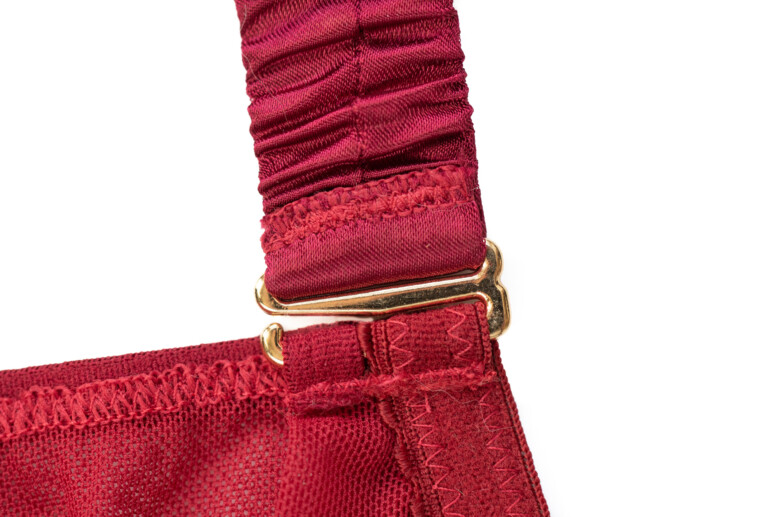 Biustonosz przychodzi z pięknymi ramiączkami pokrytymi zmarszczoną satyną, które mimo możliwości wymiany ich na inne (z gładkiej satyny lub z tiulową falbanką) pozostały moimi ulubionymi. Aż się prosi, by mogły wyjrzeć z dekoltu, ale pod ubraniem sprawdzają się równie dobrze.