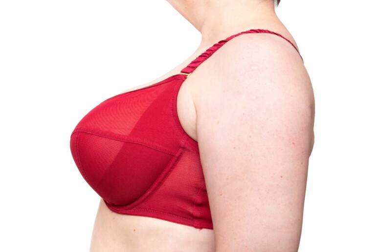 Suzanna daje podniesiony, zaokrąglony, choć lekko stożkowaty kształt piersi. Odrobinę retro. Może nie zachwyci fanek perfekcyjnych kulek, ale dla mnie jest w porządku. Może zauważycie, że trochę marszczy się na bokach – tam, gdzie na szczęście nie ma fiszbin bocznych (których nie lubię), ale ja nie mam z tym zjawiskiem problemu.