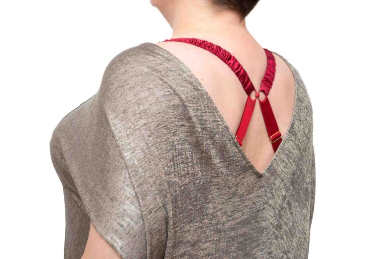 Ponieważ ramiączka są różnej szerokości, zadbano także o to, by pętelki, do jakich są dopinane, były dostosowane do obu wariantów. Możesz zatem włożyć haczyk ramiączka albo do pętelki o pełnej szerokości/dwóch pętelek, albo tylko do węższej.