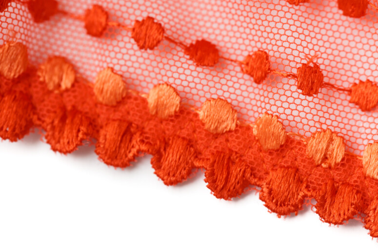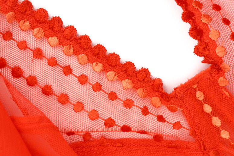 A wracając do wersji chilli – to znowu jeden z tych kolorów, od których szaleją aparaty, bo zatrąca o neon. Jest to bardzo intensywny jasnoczerwony, w pewnych kontekstach graniczący z pomarańczem, są zresztą pomarańczowe elementy w hafcie. Ale jeśli nie lubisz pomarańczowego, to absolutnie się nie zrażaj, bo oranż to też nie jest. Jak ja lubię takie niejednoznacze barwy!