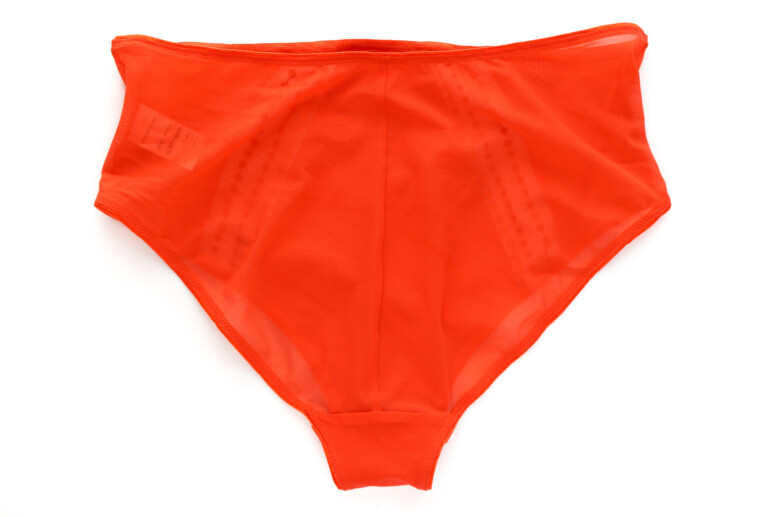 Mam takie spostrzeżenie w kwestii dobrych majtek. Notorycznie nie chcą układać się gładko, kiedy robię im zdjęcie na płasko, bez człowieka wewnątrz – tak jakby zostały wyprofilowane w trzech wymiarach, a nie zszyte z dwóch płaskich kawałków materiału. Wow, ktoś rozumie, że istota ludzka to nie płaski przedmiot. Takie właśnie są wysokie figi Matilda, które pokochałam tak samo, jak stanik. Są przejrzyste, z wyjątkiem przedniego „panelu skromności”, który im wybaczam ;-), układają się i leżą świetnie, są wygodne. Krojowo rzecz biorąc, są to #majtkizgolfem, dość wysoko wycięte na nogawkach.