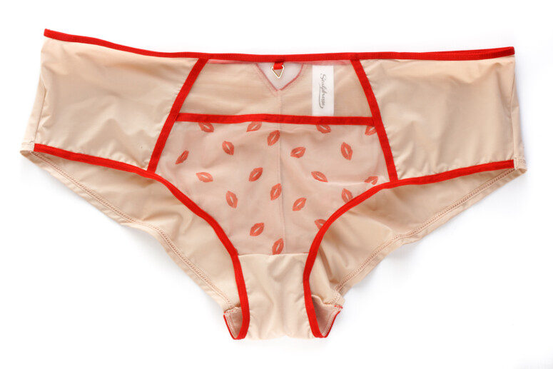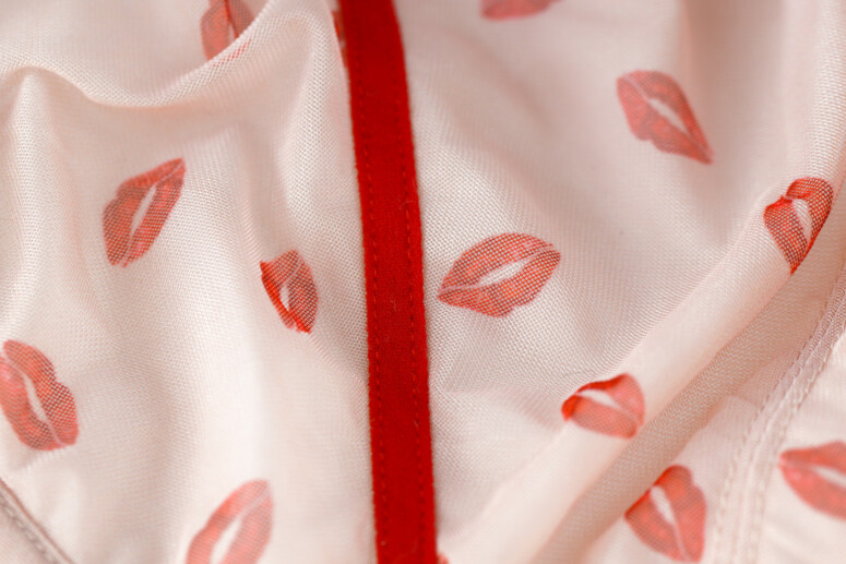Lubię bieliznę z nadrukami – gdy nie są infantylne, ani zbyt banalne. Miejsce na przykład misiów, czy innych pluszaków, jest moim zdaniem w szufladzie z zabawkami, jestem też całkowicie obojętna na serduszka, które panoszą się wszędzie w okolicy walentynek i innych prezentowych okazji. „Całuski” to jednak całkiem co innego! 🙂 Motyw czerwonych ust może kojarzyć się z pocałunkami, miłością, seksem, a także z kobiecością jako konstruktem, co można traktować przewrotnie. Czerwone usta mogą całować, a mogą też wypowiadać ważne, trudne zdania. Są wymowne oraz wieloznaczne – i za to je lubię. Poza tym, że są zabawne i kiczowate tą odmianą kiczu, która do mnie przemawia.