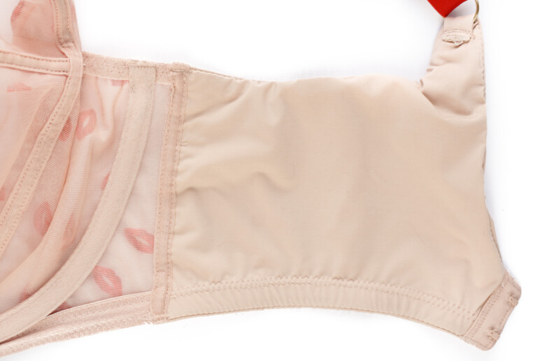 Wierzchnia warstwa tiulu w dolnej części miseczek delikatnie się marszczy wzdłuż naprężeń materiału, ale pod ubraniem nie jest to widoczne, bo materiał jest mocny, ale cienki.
