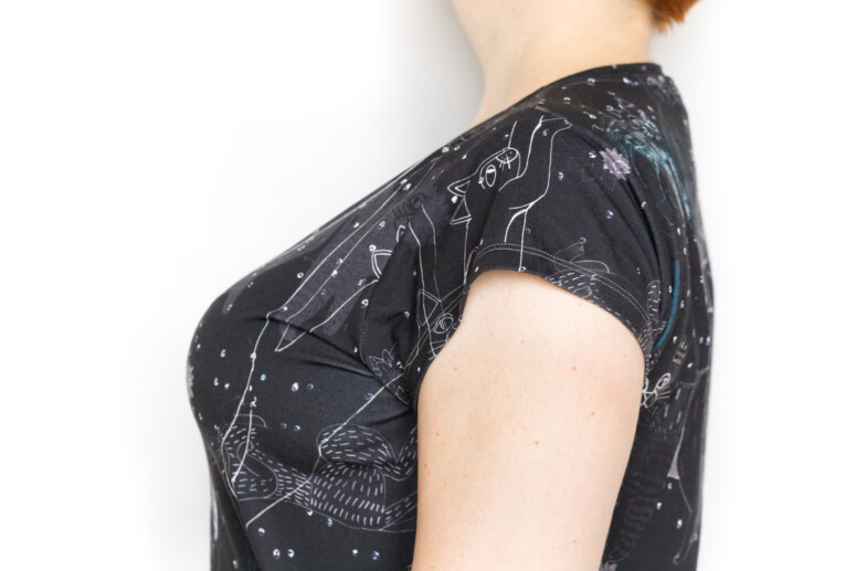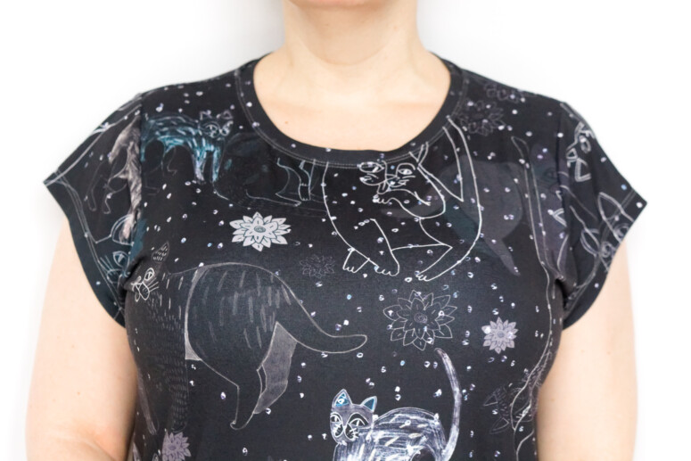 (Koci tiszert pochodzi z firmy Cacofonia Milano i ma rozmiar… 4XL, co jest największym rozmiarem tiszerta, jaki miałam w życiu! I największym produkowanym. Ech, te damskie rozmiarówki tylko-dla-małobiuściastych. Męskie 4XL jest dwa razy takie!).